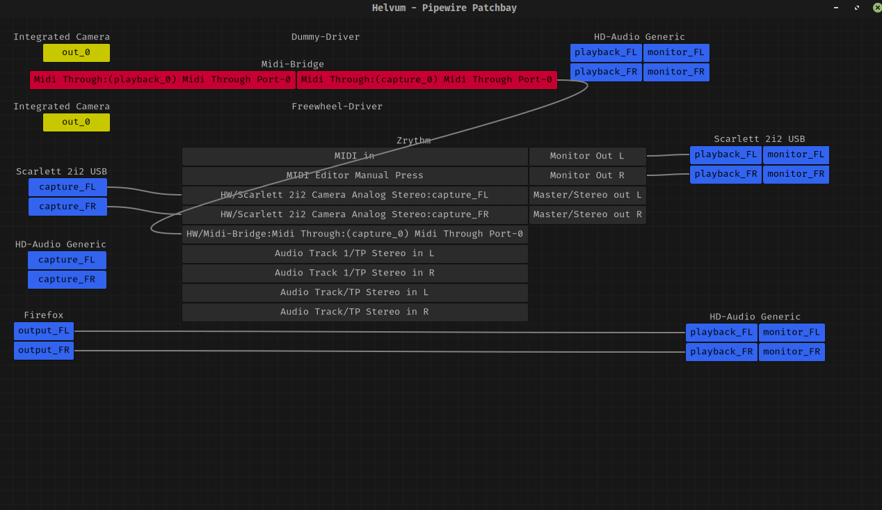To be in full control of your audio streams the minimal patchbay Helvum has been included