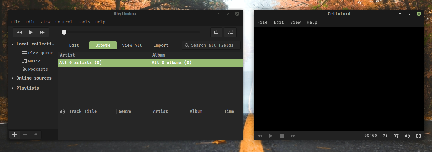 The default Browser is of course Firefox. As a default Office Suite the robust Libre Office is shipped with the beautiful Libreoffice style Yaru icon theme. Coming to Multimedia: Celluloid is the default video player and Rhythmbox as a music player. Celluloid defaults to the classic window border layout and Rhythmbox is pimped with the the Alternative Toolbar Plugin.