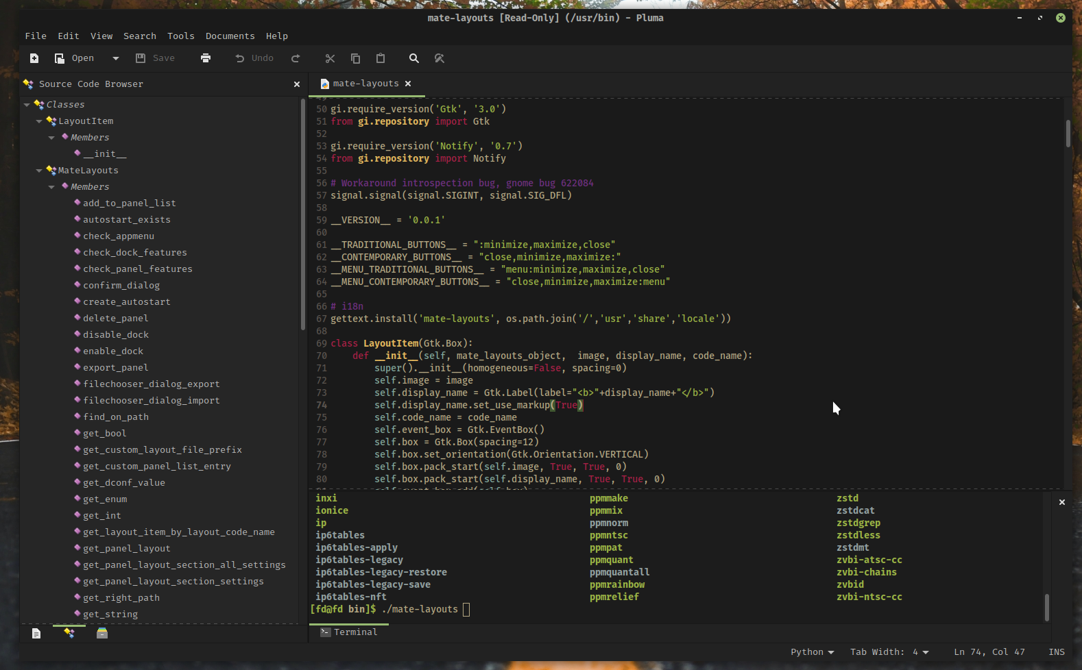 Additionally for the text editor Pluma the official MATE package pluma-plugins is now included by default. This transforms Pluma to a usable IDE with some plugins like bracket and word completion, quickhighlight, and source-code browser:
