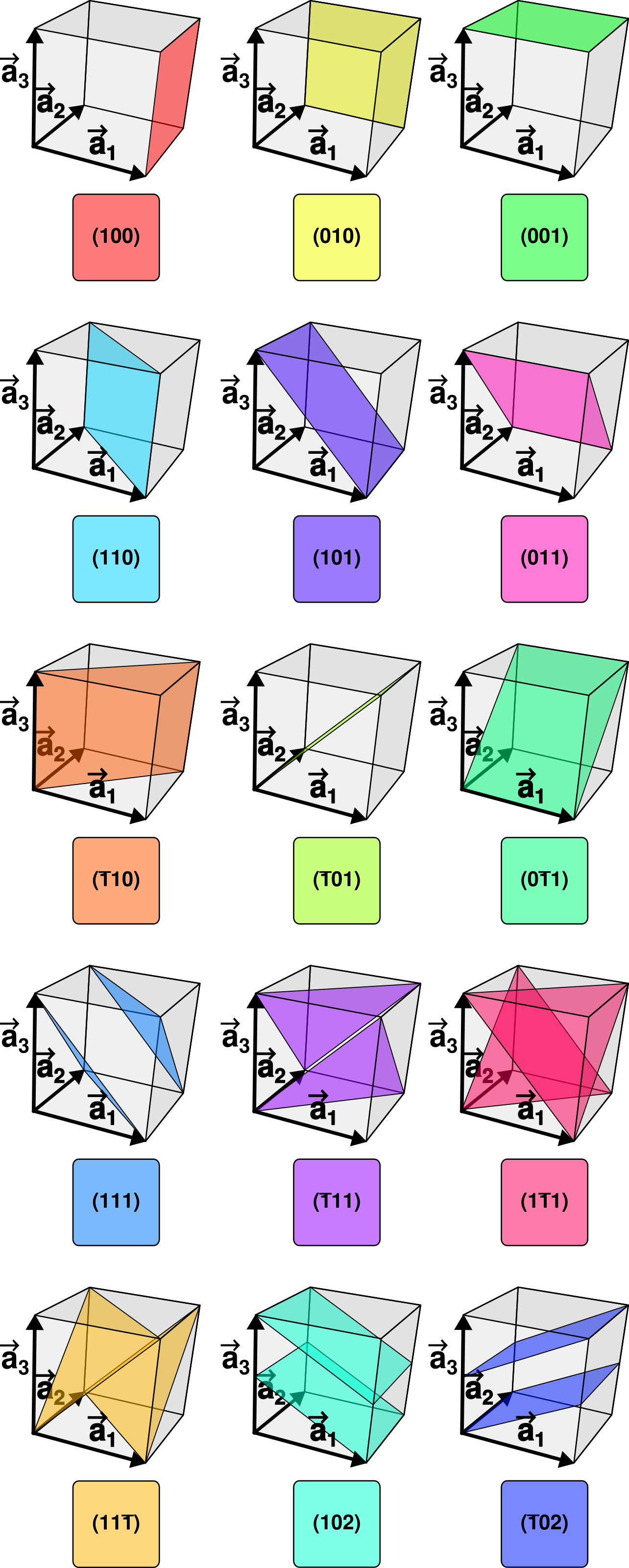 There are many different planes one can consider in a crystal. To be able to distinctly differentiate between different planes one uses the Miller Indices \(h, k, l\).